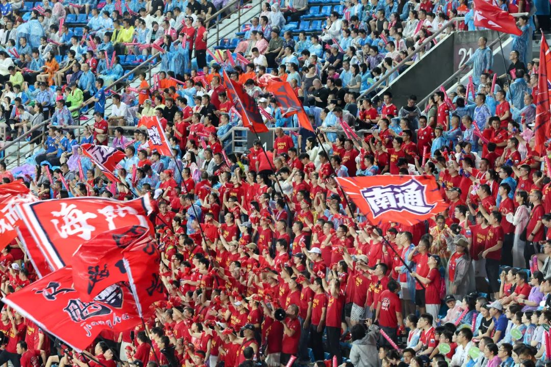 8月2日,“苏超”第八轮首个比赛日,南通队在镇江市体育会展中心体育场客场3:0战胜镇江队,成为“苏超”战队中唯一保持全胜的球队,以积21分的战绩位列“苏超”积分榜榜首。许丛军摄