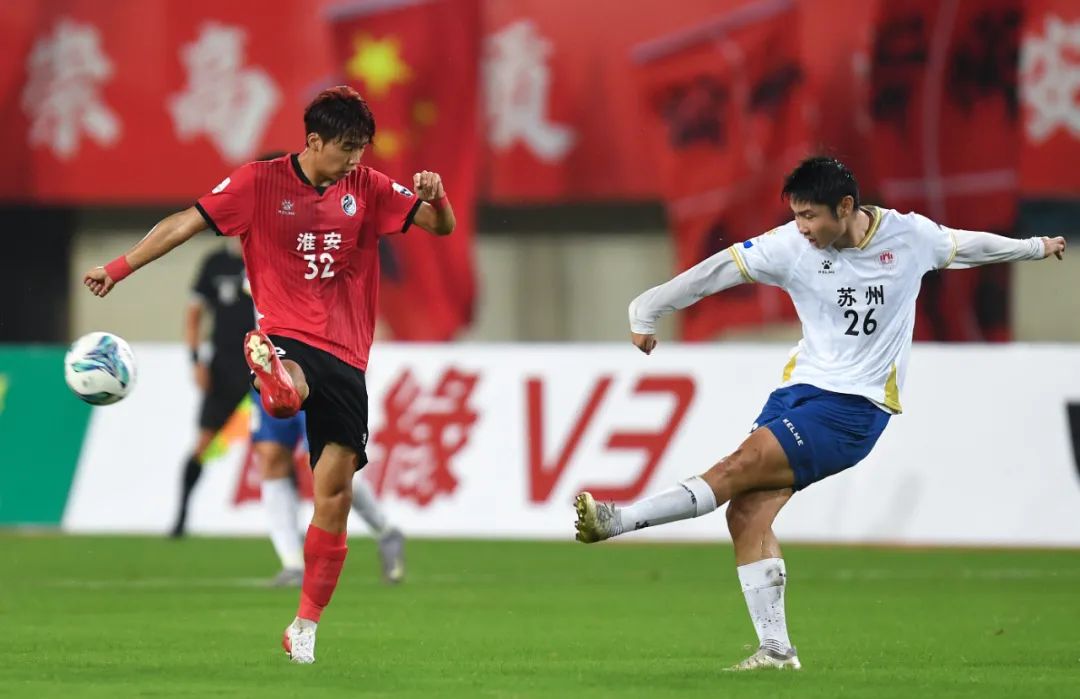 淮安市体育中心体育场,淮安队主场迎战苏州队,小龙虾遇上大闸蟹,最终以淮安队3:0获胜,打破了苏州队的“不败金身”。