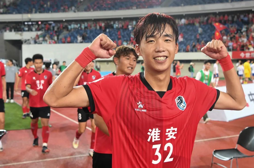 8月2日晚,“苏超”第八轮,淮安队在淮安市体育中心体育场迎战苏州队。淮安队凭借32号吴雨成的“帽子戏法”,最终以3比0战胜苏州队。 万程鹏 摄