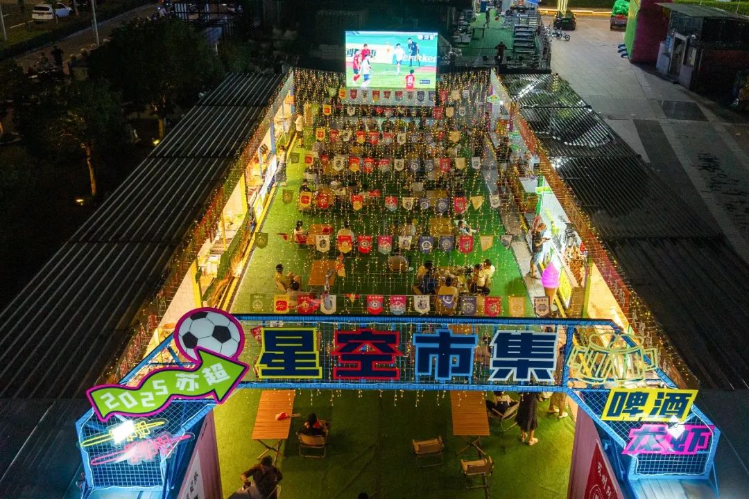 8月2日,“苏超”苏州队客场挑战淮安队,在相城区活力岛的星空市集,市民们在观看足球赛的同时,享受啤酒烧烤美食。 吕俊龙 摄