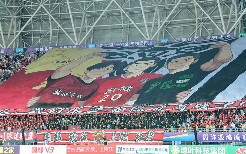 宿迁市奥体中心迎来宿迁vs淮安德比之战。比赛开场前,宿迁主场看台上展开一幅以联赛13支球队为元素绘制的参天巨树巨型TIFO,象征江苏足球的蓬勃生命力。大雨与热血交织的夜晚,两支球队奋力拼搏,最终宿迁队凭借高驰的点球与伏小龙的劲射破门2:0战胜淮安队。高驰以7粒进球反超南京队滕帅,重登射手榜榜首。