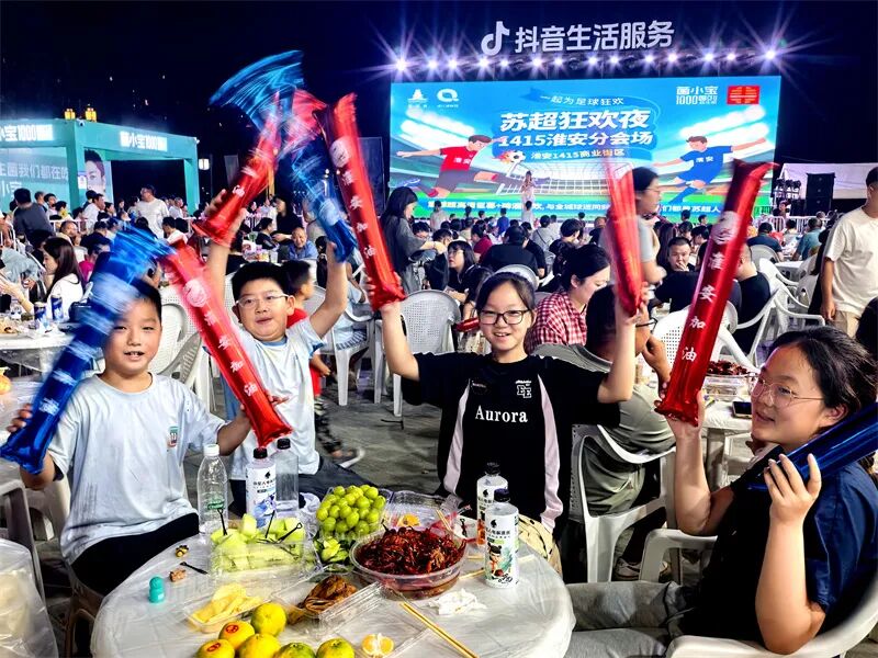 淮安市民、球迷在清江浦区1415文化商业街区第二现场集中观赛点观赛,为远征的家乡球队加油喝彩。桂宝林 摄