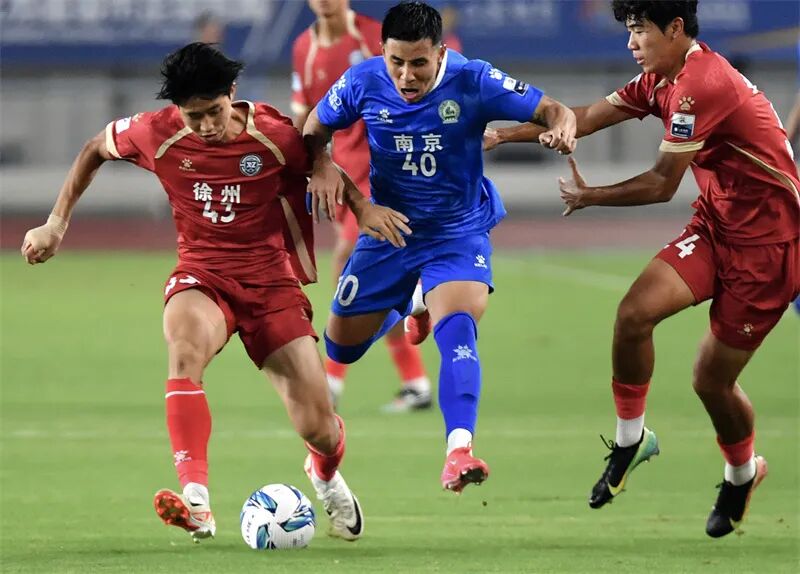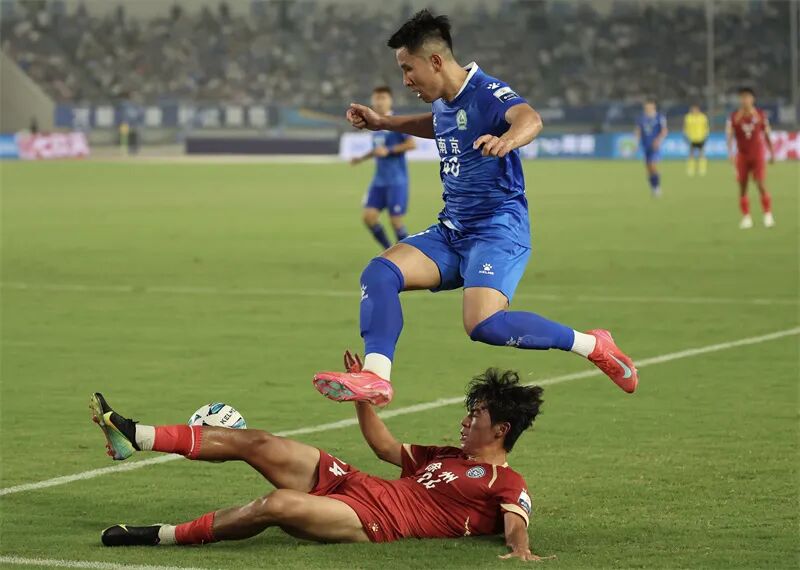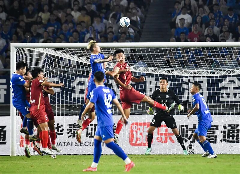 9月6日,“苏超”比赛南京队与徐州队展开激烈角逐。林琨 摄