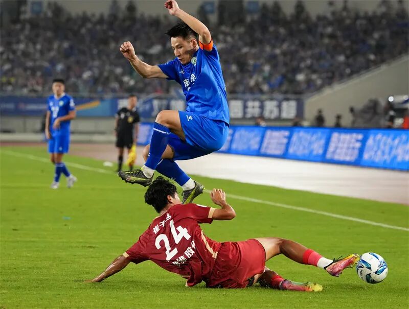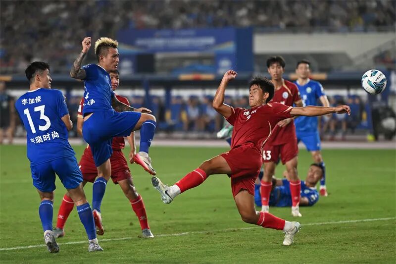 9月6日,“苏超”第十一轮无锡队对阵连云港队的比赛在江阴市体育中心体育场打响,双方激战90分钟战成0比0。吴俊 摄