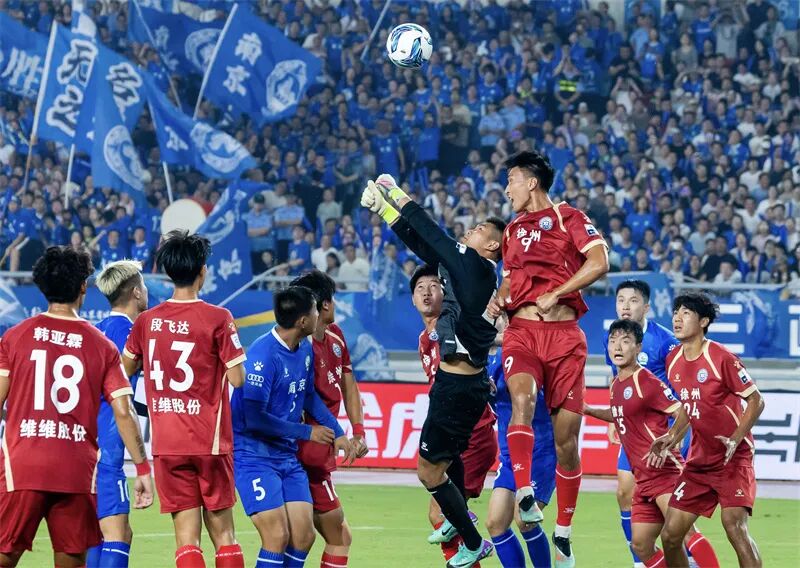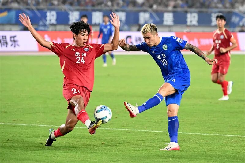 9月6日,“苏超”第十一轮,南京队主场1比1战平徐州队。肖勇 摄