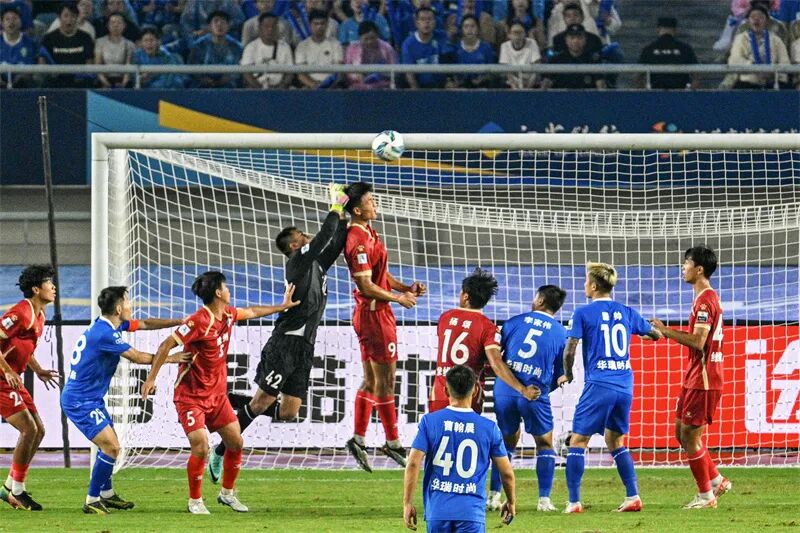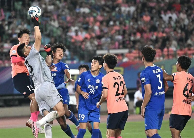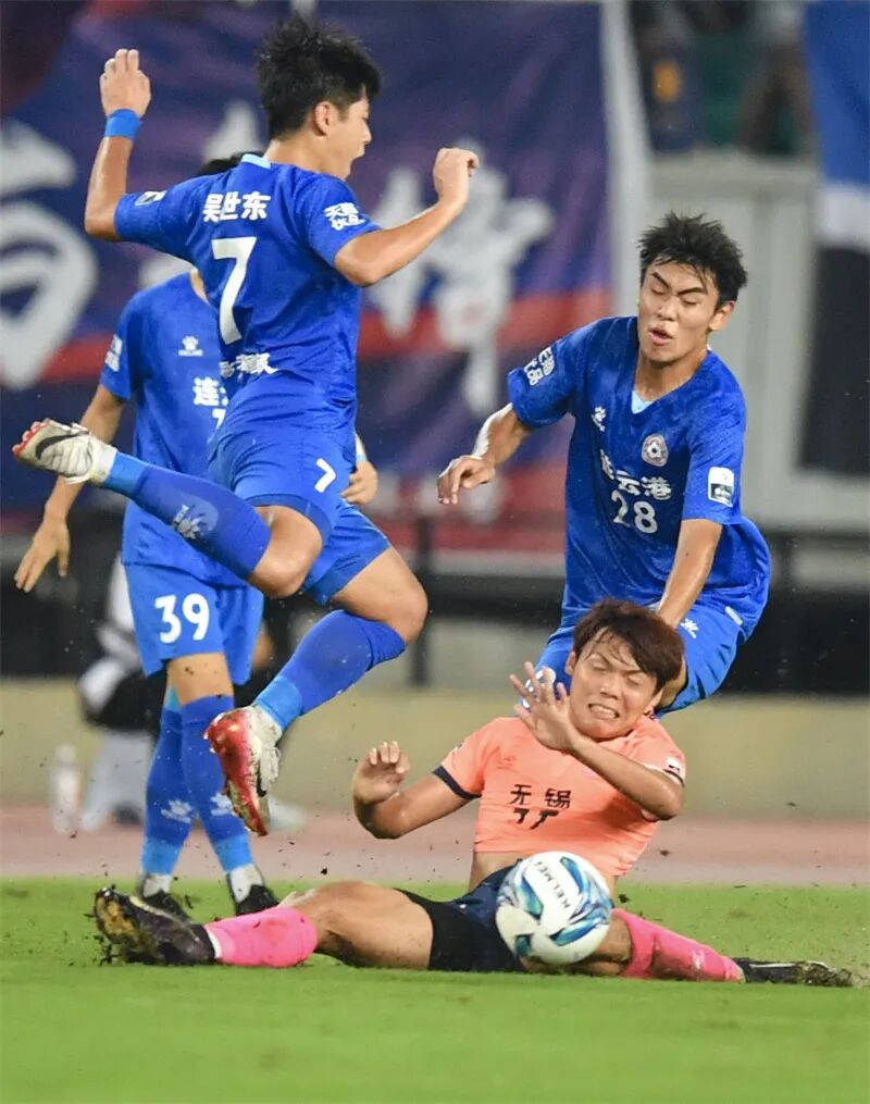 无锡队主场对阵连云港队,经过激战,最终双方以0比0握手言和。黄一清 摄