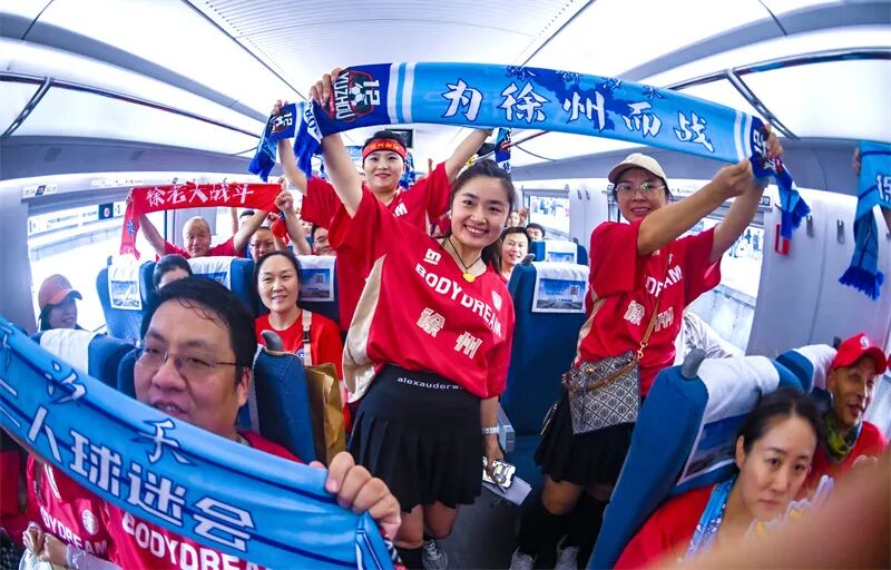 徐州球迷乘坐观球专列奔赴南京,为家乡球队助威。刘立明 摄