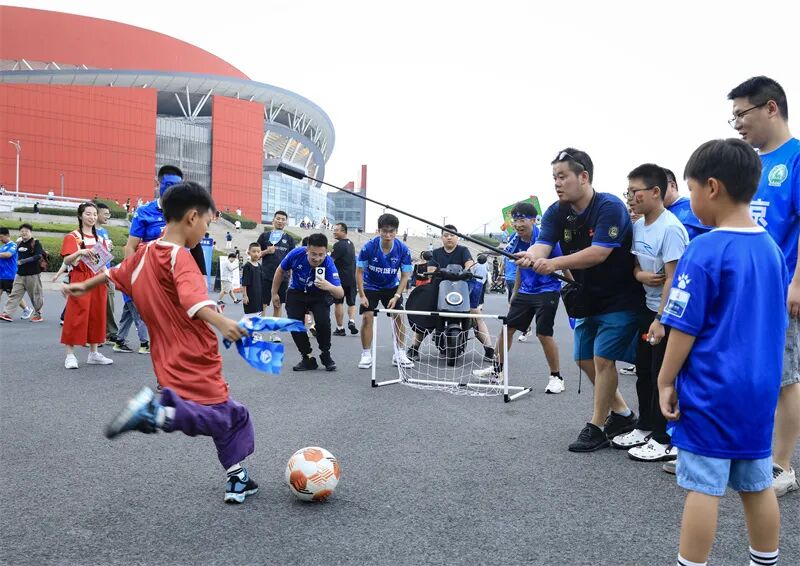 南京奥体中心广场以“苏超”为平台的文旅活动吸引球迷参与。王亚东 摄