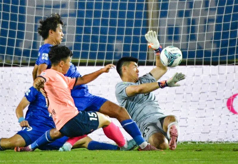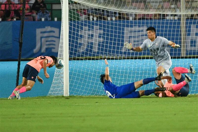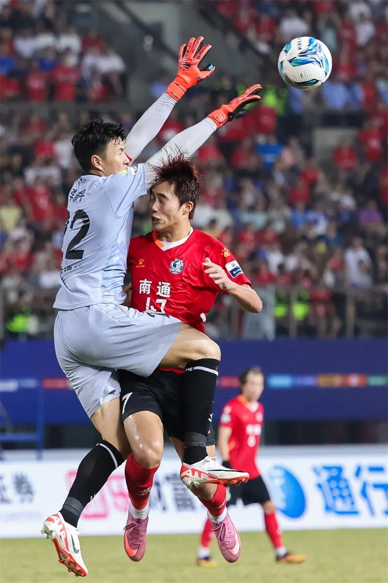 南通队守门员奋力扑球。刘江瑞 摄