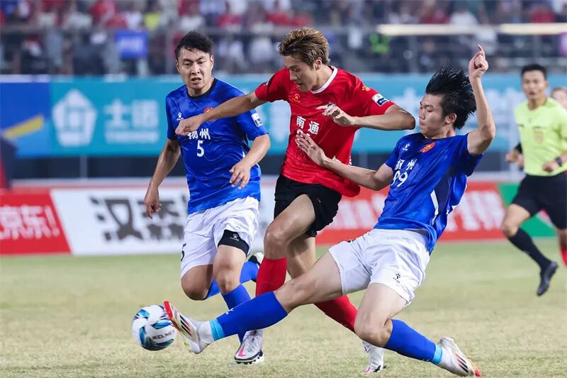 南通队以1比0战胜扬州队,在“苏超”比赛中保持十战全胜。蒋文超 摄