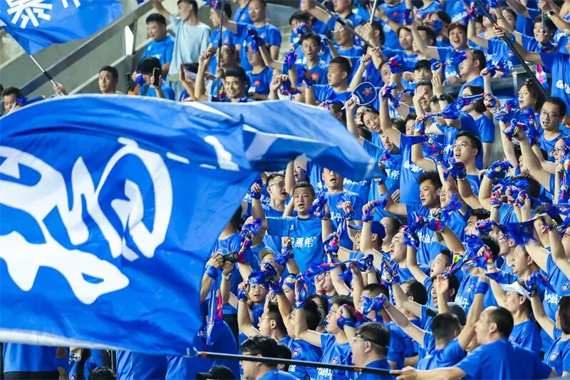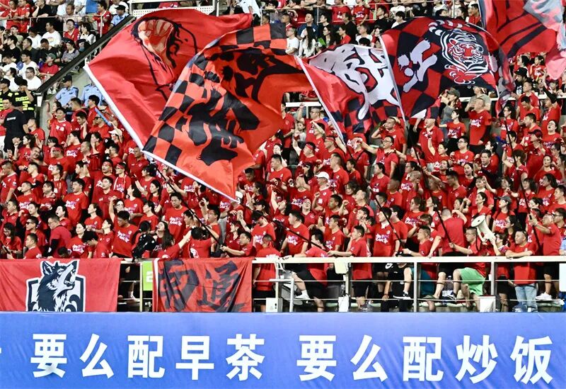 徐州球迷呐喊助威。万程鹏 摄
