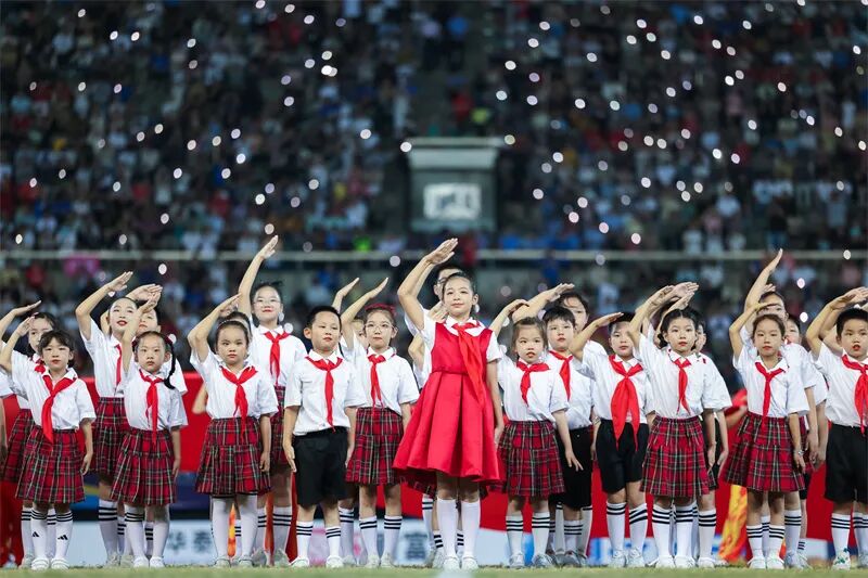 中场休息,《歌唱祖国》响彻全场。蒋文超 摄