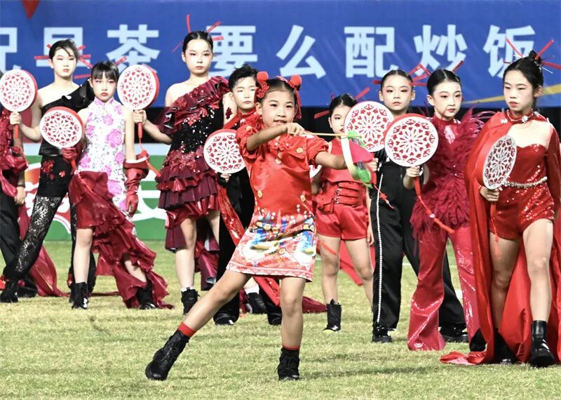 百人团队手执非遗“花香鼓”舞动。 余萍 摄