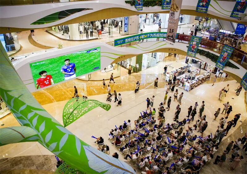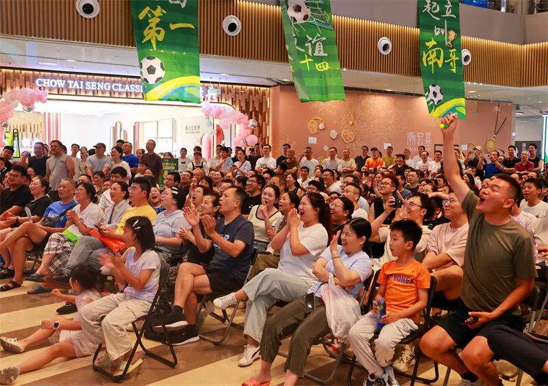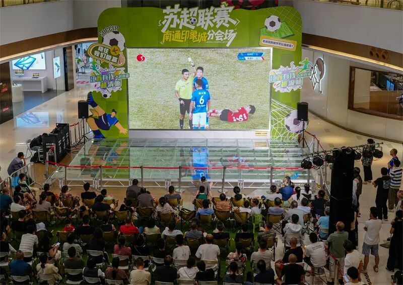 如皋市吾悦广场,市民通过大屏观看“苏超”比赛。徐慧 摄