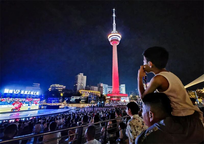 “苏超”第二观赛场南通市崇川区环西文化广场座无虚席。李斌 摄
