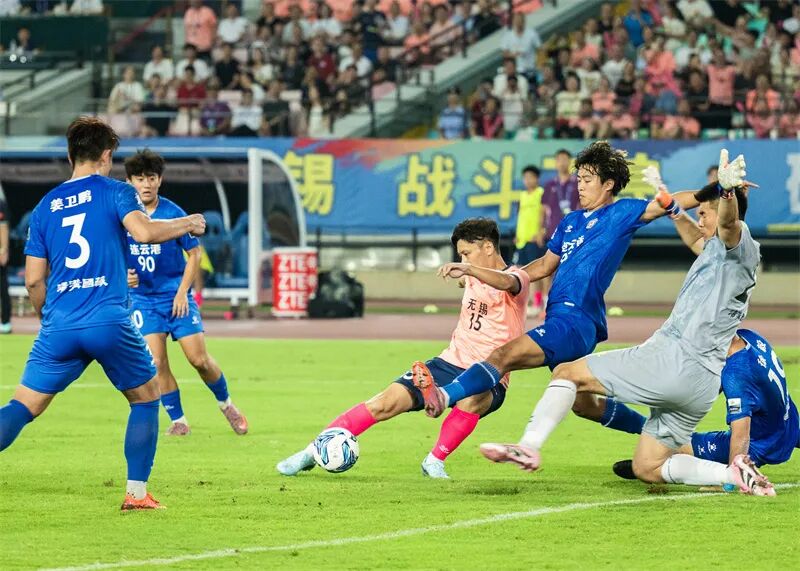 无锡对战连云港的比赛在江阴市体育中心体育场开赛。分列积分榜第6、第7位的无锡队和连云港队,均以必胜决心投入此战。“大圣故里”的奔放与“太湖明珠”的灵秀碰撞出独特火花,整场比赛双方互有攻守但均无建树,0:0的比分一直保持到终场。
