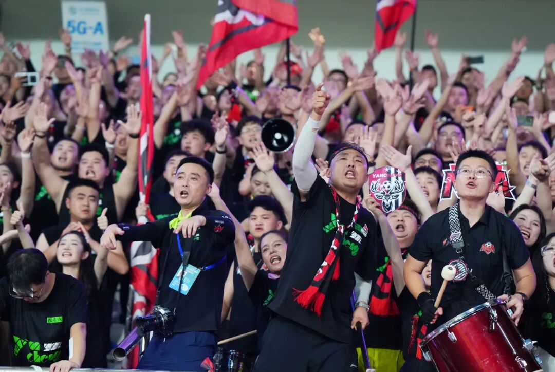 9月7日晚,“苏超”第十一轮,苏州队迎来关键之战,在苏州市体育中心体育场主场对阵劲敌盐城队。经过激烈比拼,最终苏州队2:3憾负盐城队。现场,32578名球迷共同见证了这场精彩的攻防较量。吴俊 摄