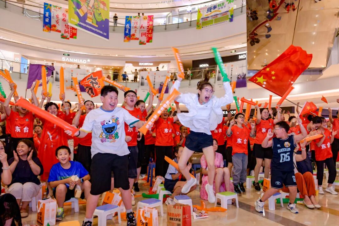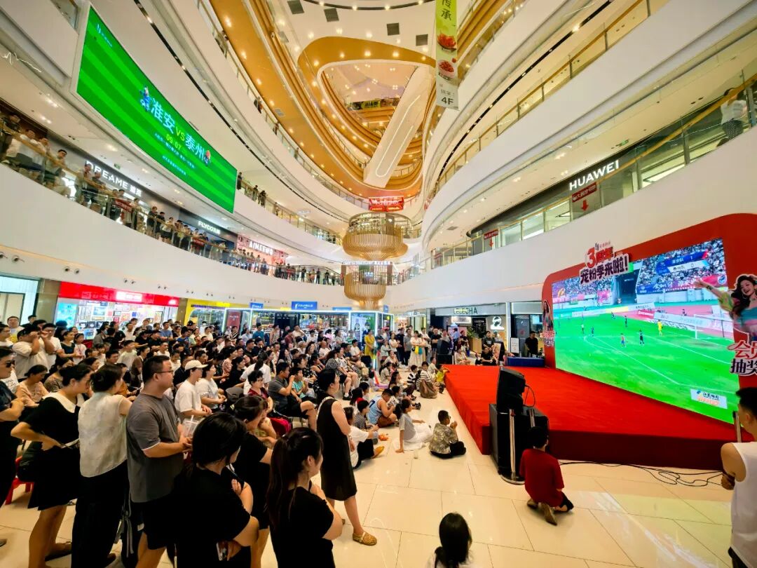 9月7日晚,“苏超”第十一轮淮安主场迎战泰州队的“背水之战”备受市民关注,淮安市民在华信MALL商场等“第二现场”观赛,市民们热情高涨,商场赛场同频共振,为球队呐喊助威。桂宝林 摄