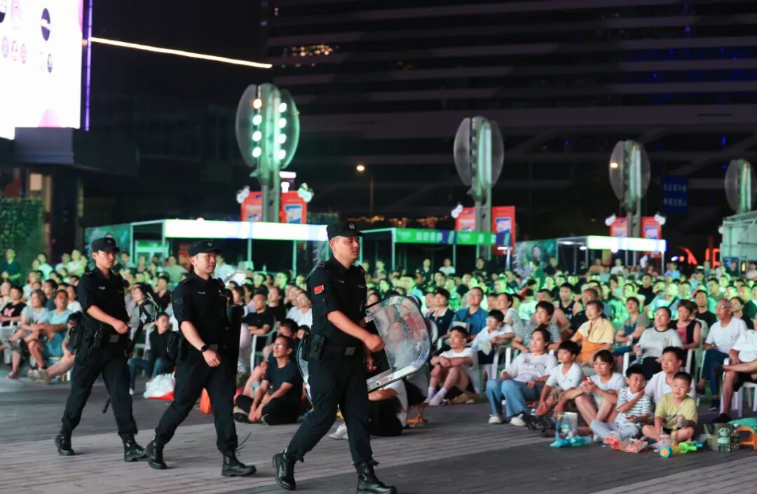 9月7日,“苏超”盐城队客场对阵苏州队,盐城新弄里第二现场保安们守护着球迷们观赛。崔桂林 摄