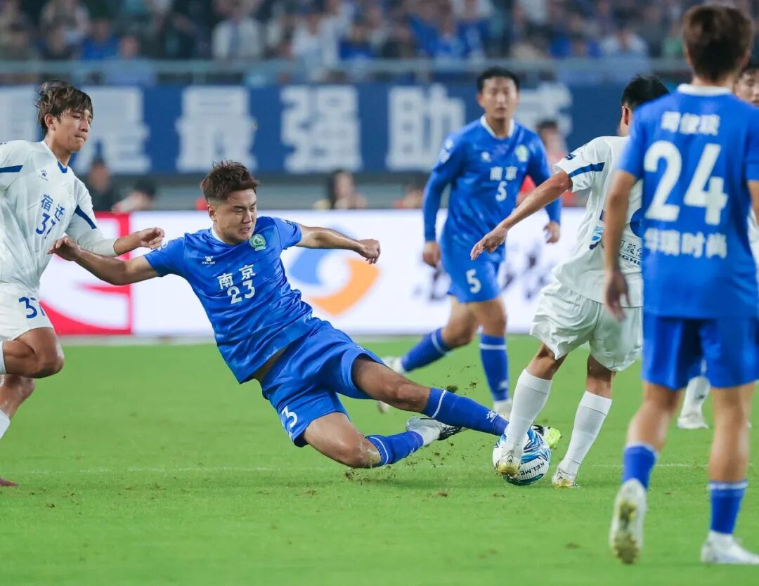 9月27日晚,2025年江苏省城市足球联赛常规赛收官战,南京队坐镇南京奥体中心主场迎战宿迁队。最终南京队4:0战胜宿迁队,以常规赛第2名晋级,宿迁队排名第9无缘淘汰赛。肖勇 摄