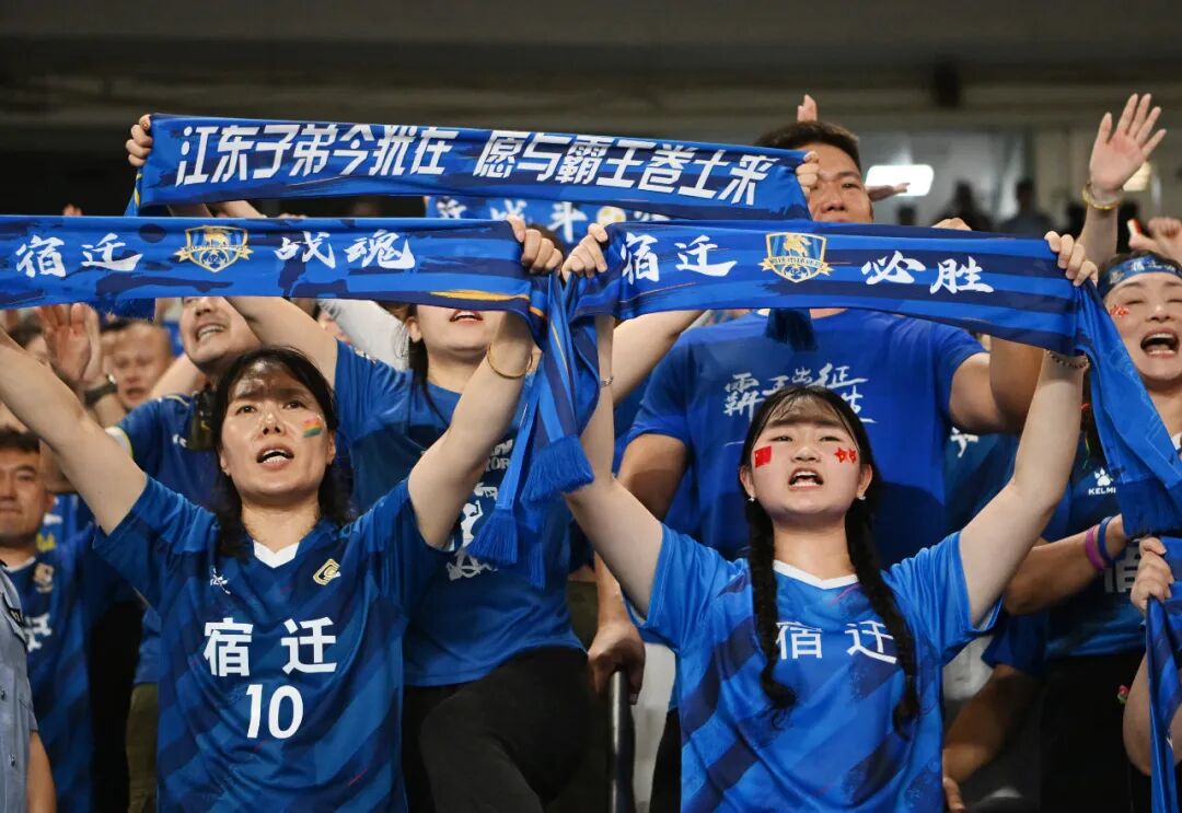 宿迁球迷举起横幅支持自己的球队。万程鹏 摄