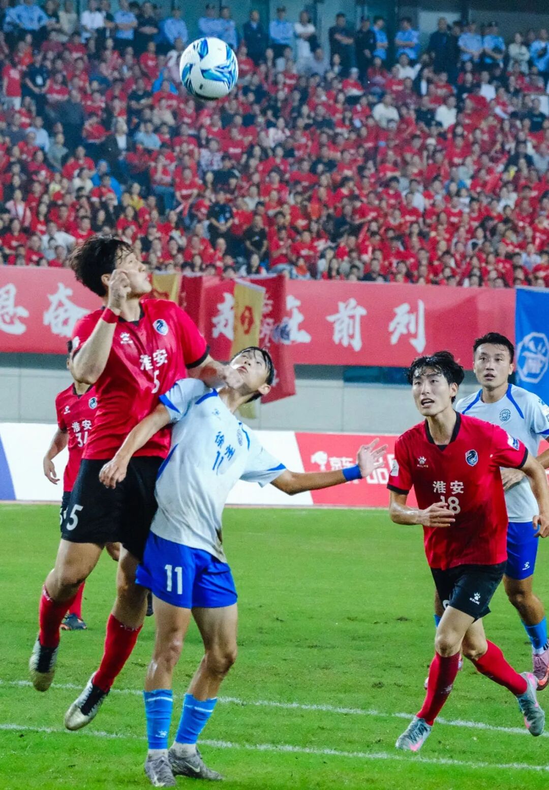 淮安市体育中心体育场内,淮安队主场迎战“苏北王”徐州队,面对强大的对手,淮安队拿出全力以赴的姿态,拼抢到最后一秒,0:0战平徐州队,晋级八强!