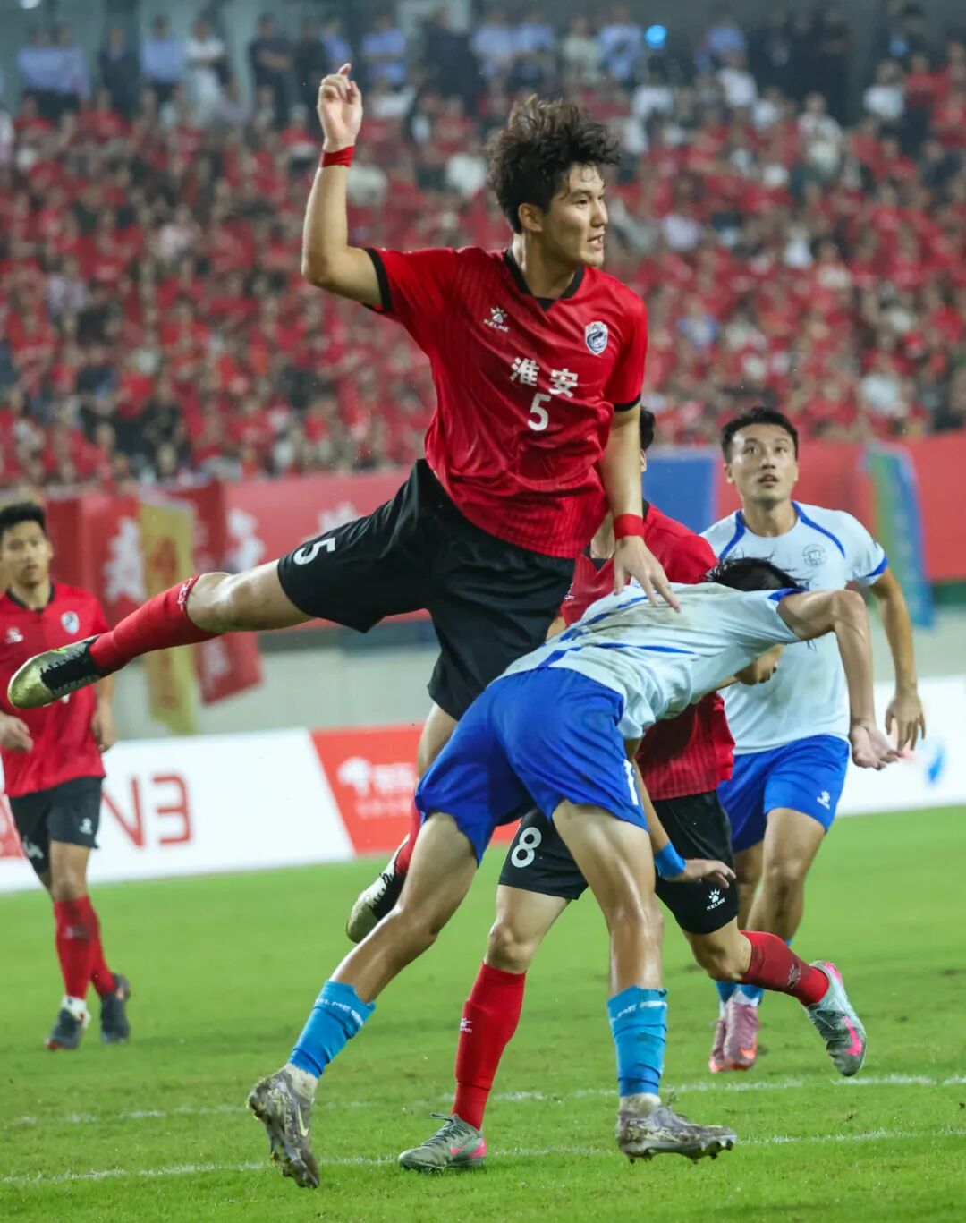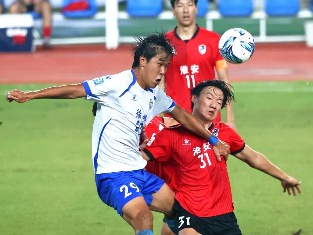 淮安队主场与徐州队0:0握手言和,携手晋级八强。许昌银 摄