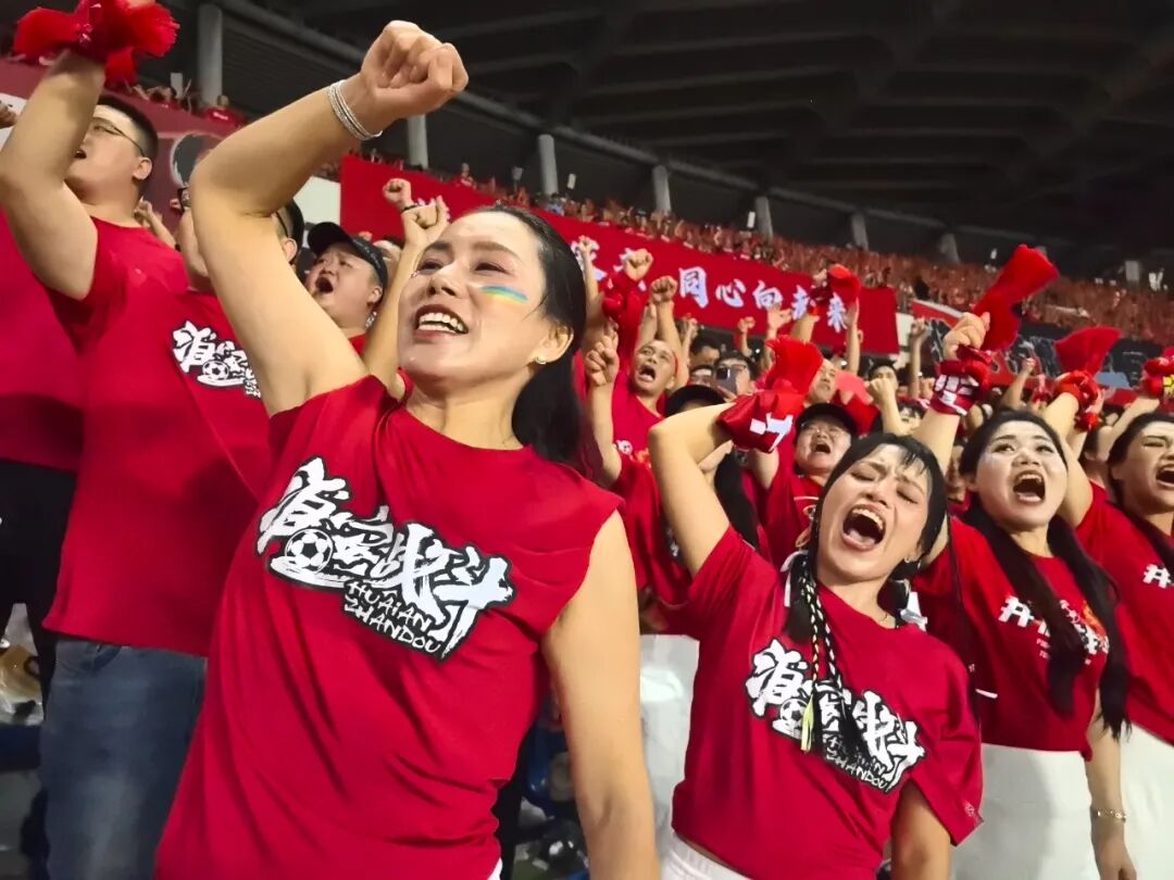球迷振臂欢呼为球队加油。郎从柳 摄