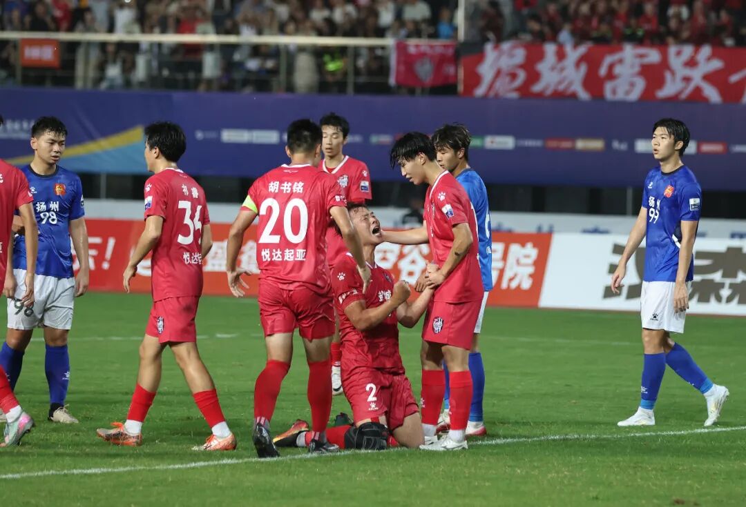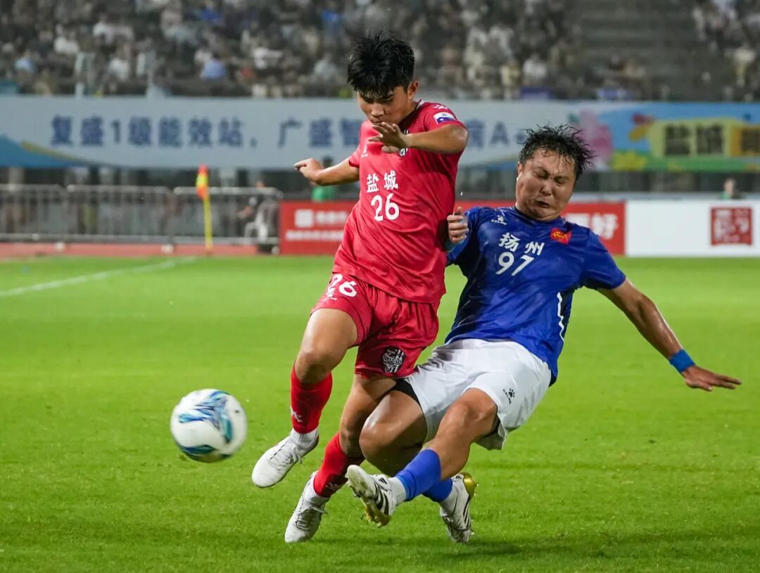 扬州队在扬州体育公园体育场迎战盐城队。经过90分钟激战,盐城队2:0击败扬州队,积22分位列积分榜第四,晋级淘汰赛,扬州队积7分排名第11位。