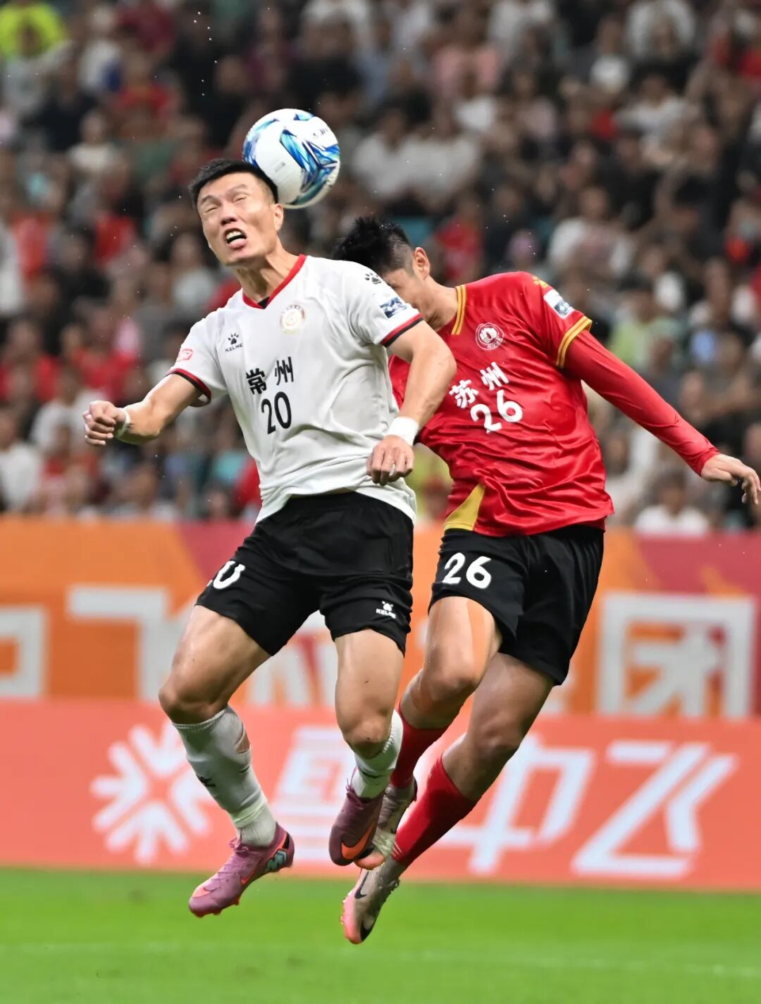 9月27日晚,“苏超”第13轮的焦点对决,淮安队坐镇主场迎战徐州队,经过激烈比拼,淮安队以0:0战平徐州队,拿到宝贵的1分,成功晋级八强。郑思宇 摄