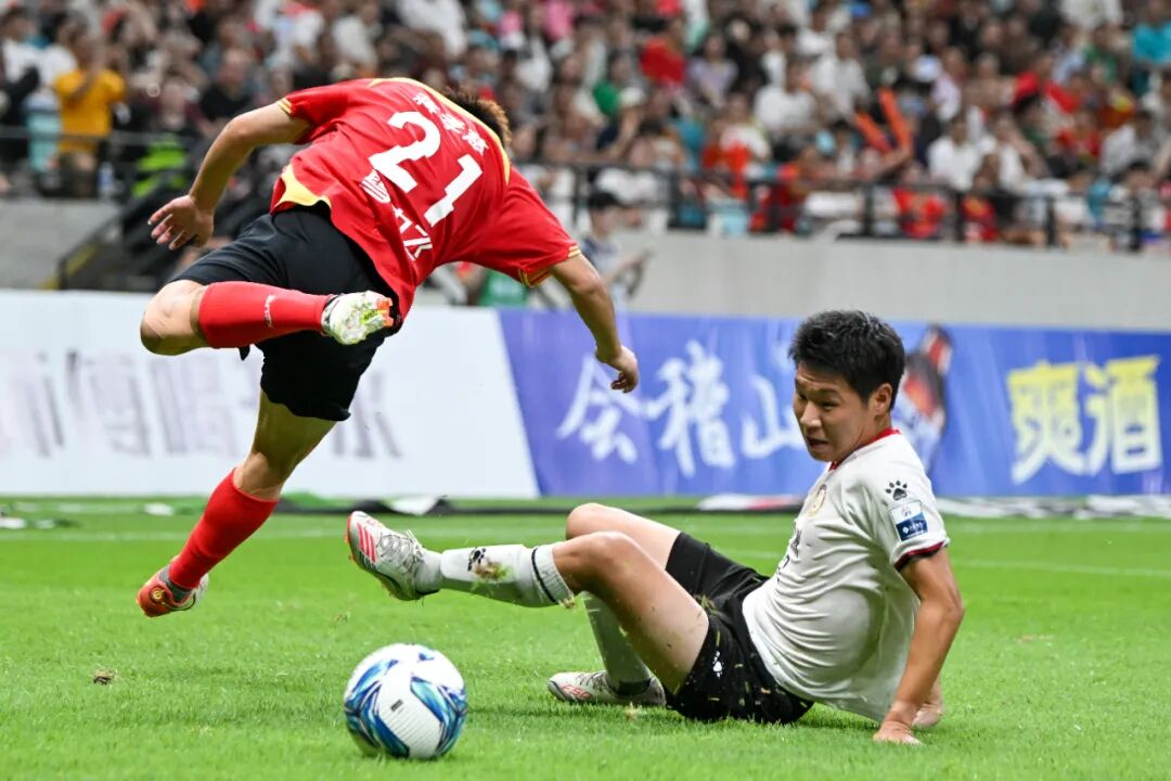 9月27日晚,“苏超”第13轮无锡队VS南通队在宜兴市体育中心举行,最终双方1:1踢平。宗晓东 摄