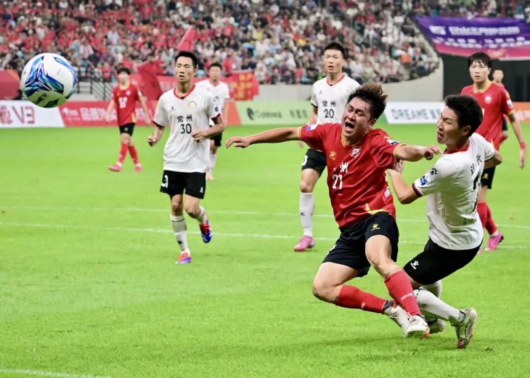 已经提前出局的苏州队和常州队,在昆山奥体中心体育场展开了一场热血沸腾的“友谊赛”。双方上演进球大战,常州队再进2球,但最终仍以2:3不敌苏州队,苏州队以最后的胜利结束了本赛季“苏超”征程。