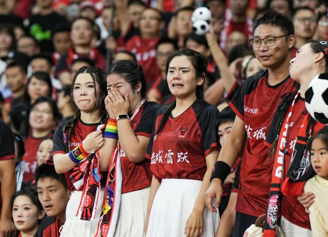 盐城惜败,球迷难掩悲伤。周晨阳 摄