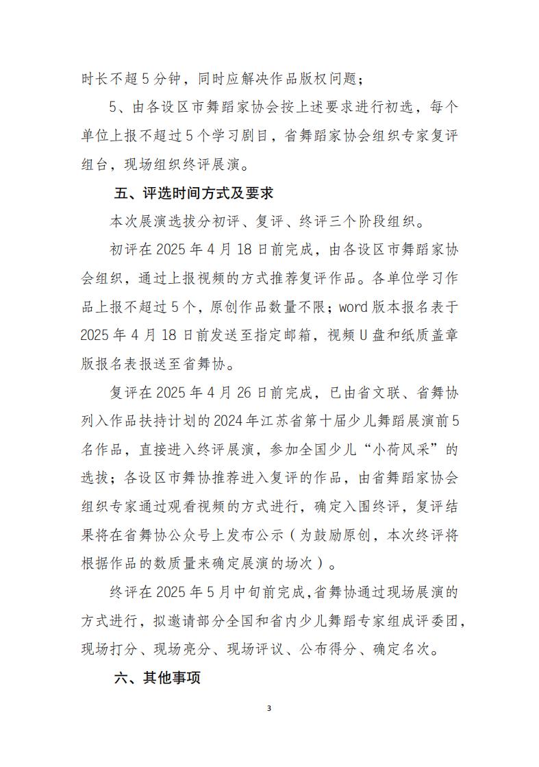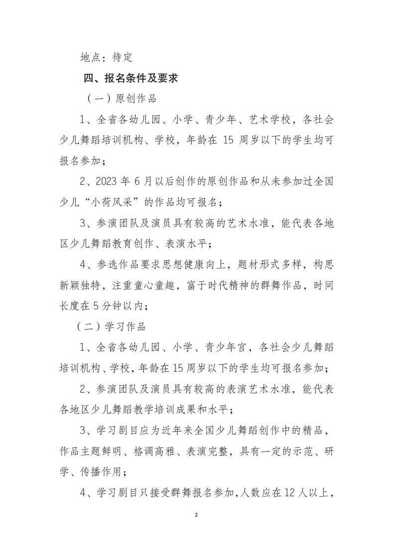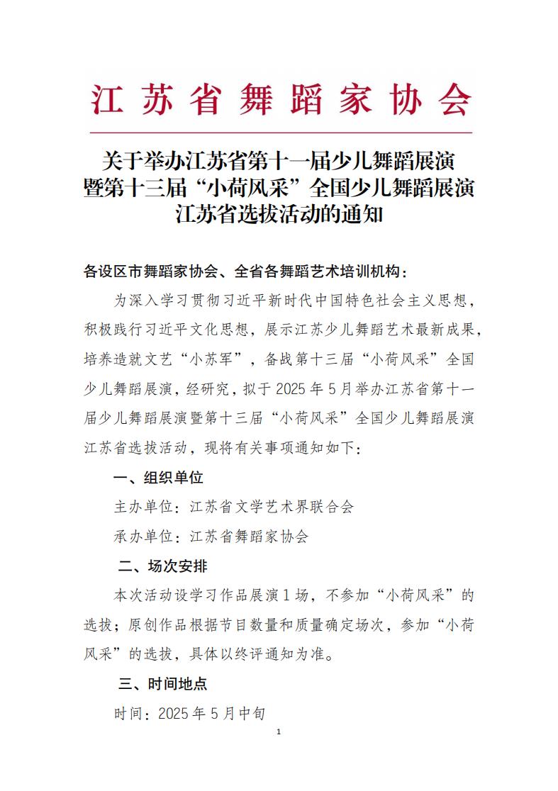 关于举办江苏省第十一届少儿舞蹈展演暨第十三届“小荷风采”全国少儿舞蹈展演江苏省选拔活动的通知