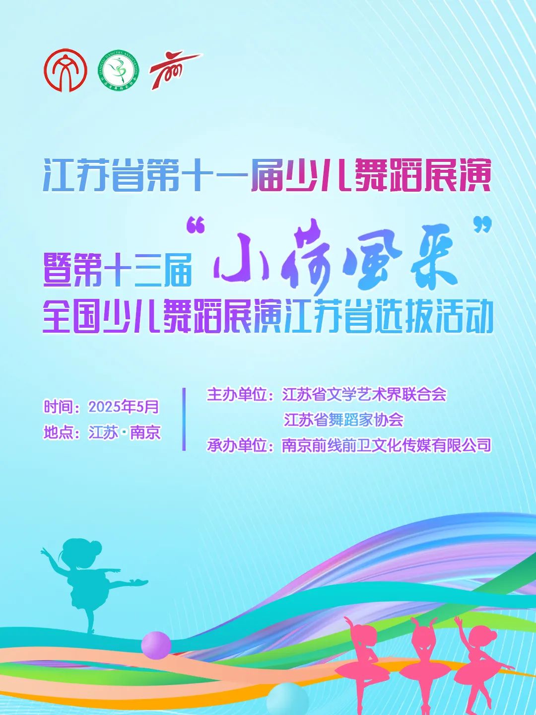 由江苏省文学艺术界联合会、江苏省舞蹈家协会主办的江苏省第十一届少儿舞蹈展演暨第十三届“小荷风采”全国少儿舞蹈展演江苏省选拔活动将于5月9日-11日每睌19:00在南京市工人文化宫工人剧场举办。