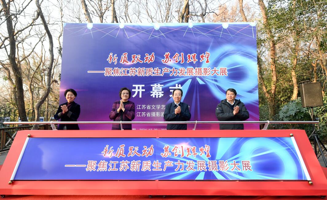 12月30日,南京市中山陵风景区森林画廊人头攒动、热闹非凡,由江苏省文学艺术界联合会主办、江苏省摄影家协会承办的“新质跃动 苏创辉煌”——聚焦江苏新质生产力发展摄影大展在此拉开帷幕。