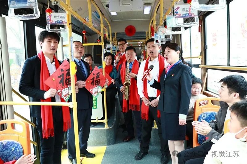 1月23日,由无锡公交集团与华庄街道景贤社区共同主办的“瑞蛇昂首启新程”春节联欢会在118路公交车厢举行。联欢会上,独唱、朗诵、器乐演奏、大合唱等节目精彩纷呈,公交员工和社区居民用深情的表演,与乘客在欢乐喜庆的氛围中共迎新春。陆晓明摄