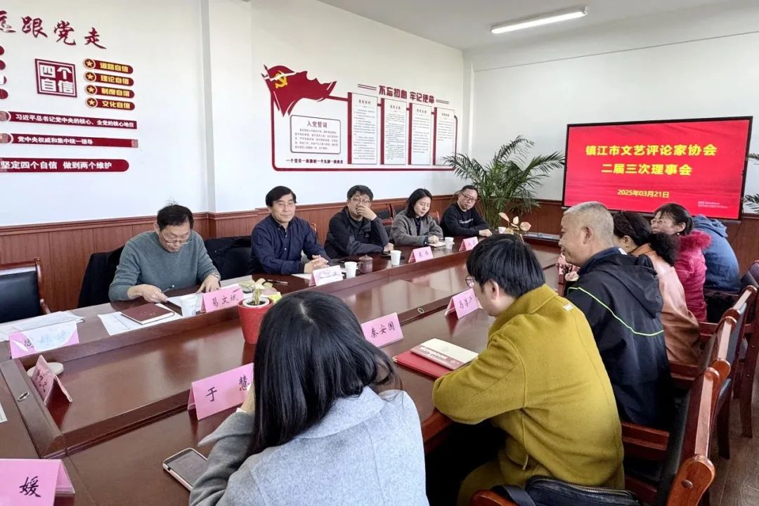 ▲日前,镇江市文艺评论家协会二届三次理事会召开。会议审议通过了市文艺评论家协会2024年度工作报告、财务报告,全面研究部署2025年协会工作。会议还讨论通过了镇江市文艺评论家协会新会员名单,并为2024年度镇江市优秀文艺评论家颁发荣誉证书。