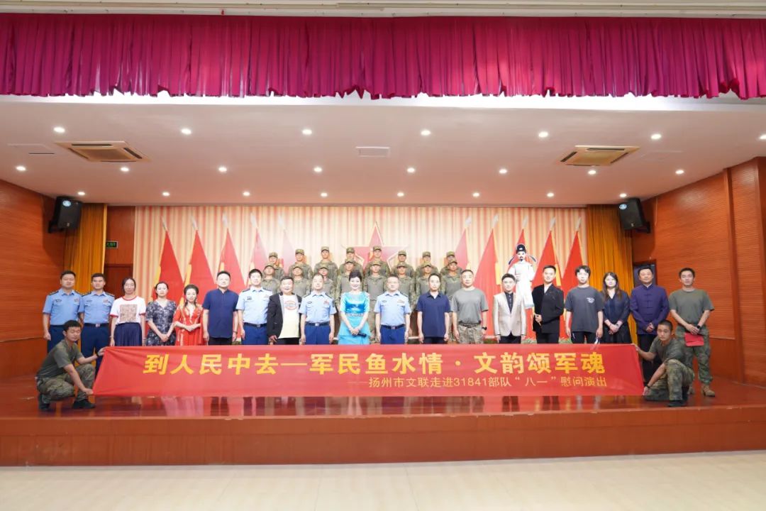 ▲为庆祝中国人民解放军建军98周年,大力弘扬革命精神,赓续红色血脉,7月30日,扬州市文联连续开展两场“到人民中去”文艺拥军慰问演出活动,彰显鱼水深情。
