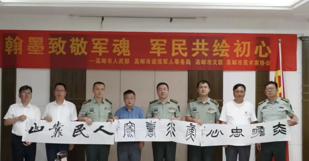 ▲7月30日上午,“翰墨致敬军魂 军民共绘初心” 书画进军营双拥共建活动在高邮市人武部举行。此次活动丰富了军营文化生活,深化了军民团结。