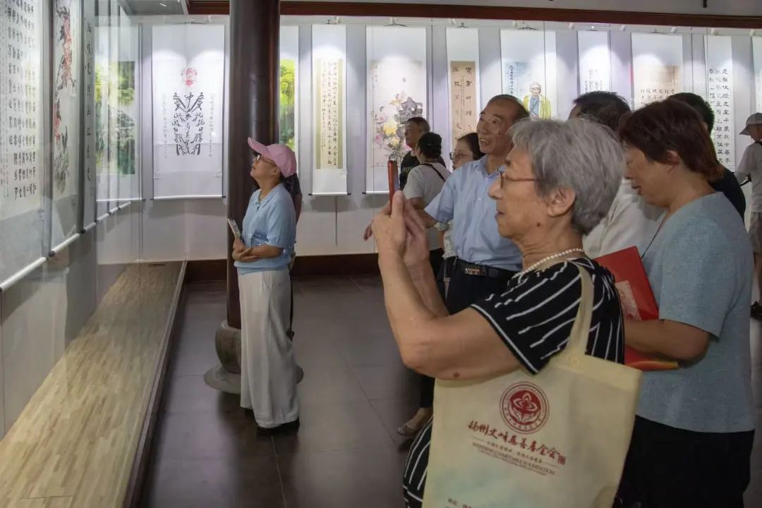 ▲8月25日上午,“丹青铭史•翰墨铸魂”扬州市老干部诗书画影作品联展在扬州八怪纪念馆开幕。本次展览共征集到投稿作品400余件,经过专家严格筛选,展出180幅书画作品和40幅摄影作品,在市委老干部局一楼展厅、扬州八怪纪念馆、史可法纪念馆、扬州汉广陵王墓博物馆等地分别同时展出。