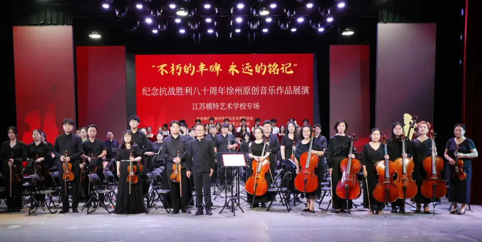 ▲9月2日下午,“不朽的丰碑 永远的铭记”——徐州原创音乐作品展演活动走进江苏模特艺术学校,学校礼堂座无虚席,在璀璨灯光中,师生们见证着这场文化盛宴。