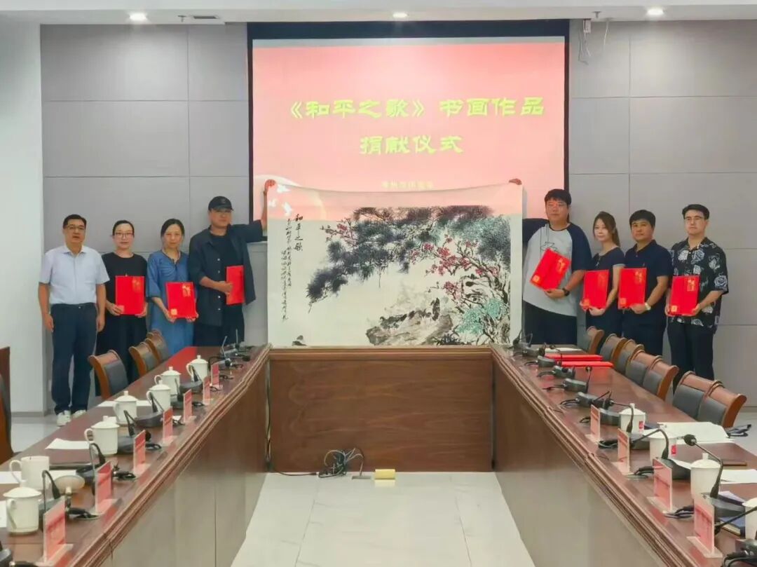 ▲9月3日下午,常州市花鸟画研究会青年分会花鸟画作品捐赠活动在市档案馆举行。此次捐赠的作品是由常州市花鸟画研究青年分会组织10位创作骨干共同创作《和平之歌》花鸟画作品(含书法诗堂、对联),旨在以笔墨丹青致敬历史,以艺术创作传承精神。