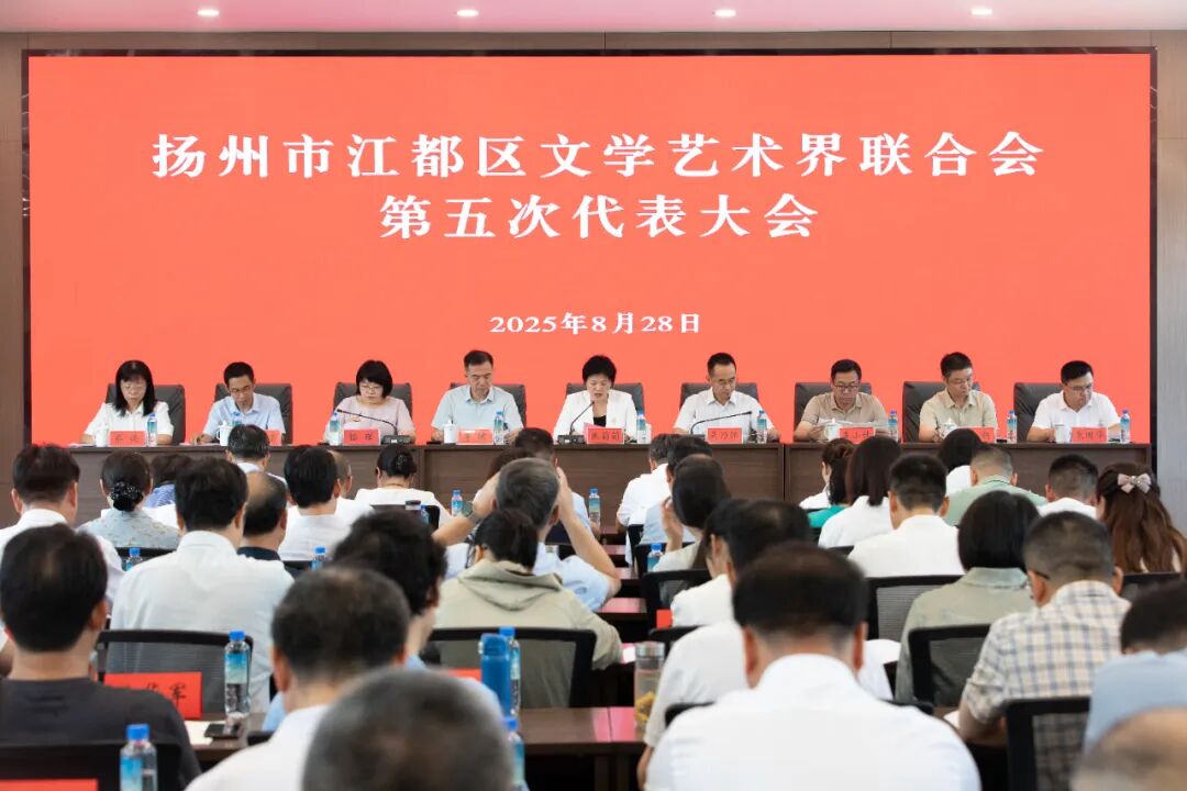 ▲8月28日,江都区文学艺术界联合会第五次代表大会召开,90名代表齐聚一堂,回顾总结第四次文代会以来的历程,共商未来五年江都文艺事业发展大计。