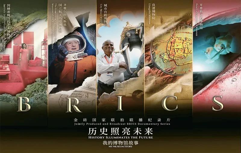 2023年8月,金砖国家领导人第十五次会晤在南非约翰内斯堡举行。在系列配套人文交流活动中,一部由金砖五国联拍联播的纪录片《历史照亮未来——我的博物馆故事》登陆国际媒体。图为该纪录片海报。