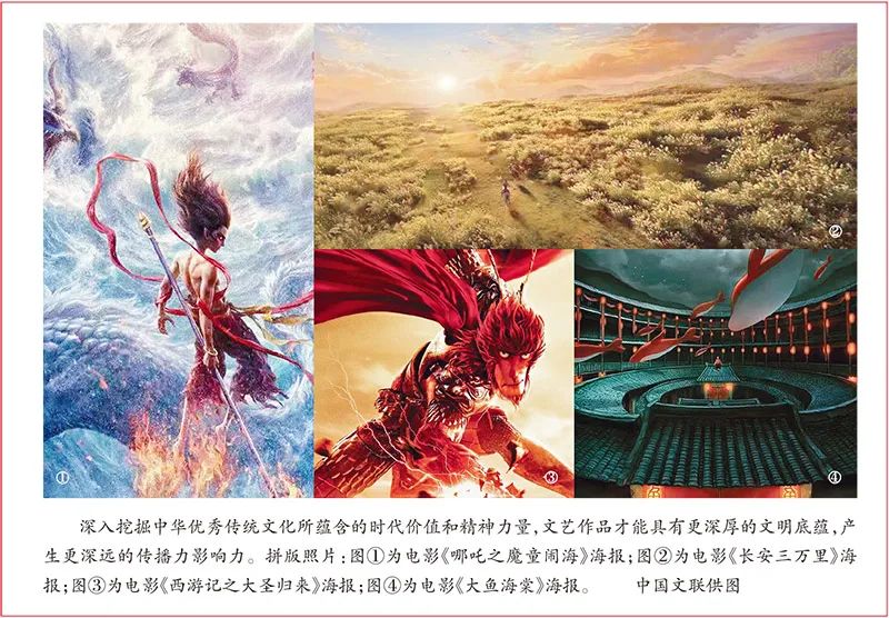 党的十八大以来,习近平总书记深刻洞察马克思主义和中华优秀传统文化的内在关系,深刻把握马克思主义理论创新和社会主义文化发展的内在规律,鲜明提出“把马克思主义基本原理同中华优秀传统文化相结合”的重大命题,标志着党的理论创造性、文化主体性、精神独立性实现了新的升华。立足新时代中国的伟大实践,广大文艺工作者以习近平文化思想为指引,牢牢把握守正创新的辩证法,通过传统之思为时代赋形,推出了大量优秀作品。动画电影《哪吒之魔童闹海》、《长安三万里》以美学精神对接文化经典,有力推动了传统与现代链接、民族与世界对话;电视节目《国家宝藏》、《典籍里的中国》凭借人文与科技交相辉映、历史与时代深度贯通而破层出圈、圈粉无数,成就了不同凡响的文化盛宴;舞台艺术作品《只此青绿》、《新龙门客栈》将中华文化的艺术价值与时代风尚的审美潮流紧密结合,持续兴起国风热潮,使中华优秀传统文化焕发出更为动人的艺术韵味和时代美感,为助力赓续中华文脉贡献了文艺力量。