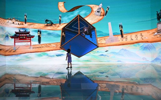 2024年5月24日,小朋友在第二十届中国(深圳)国际文化产业博览交易会科大讯飞展台体验3D奇幻空间。
