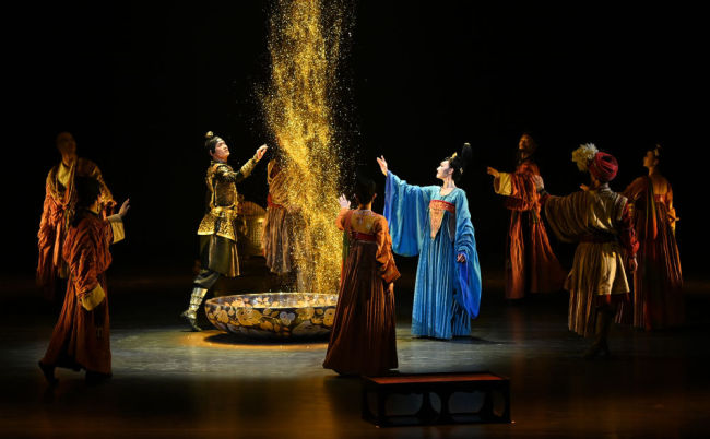 这是2024年2月11日在西安长安乐·一带一路文化艺术中心拍摄的《无界·长安》演出现场。新华社记者刘潇摄