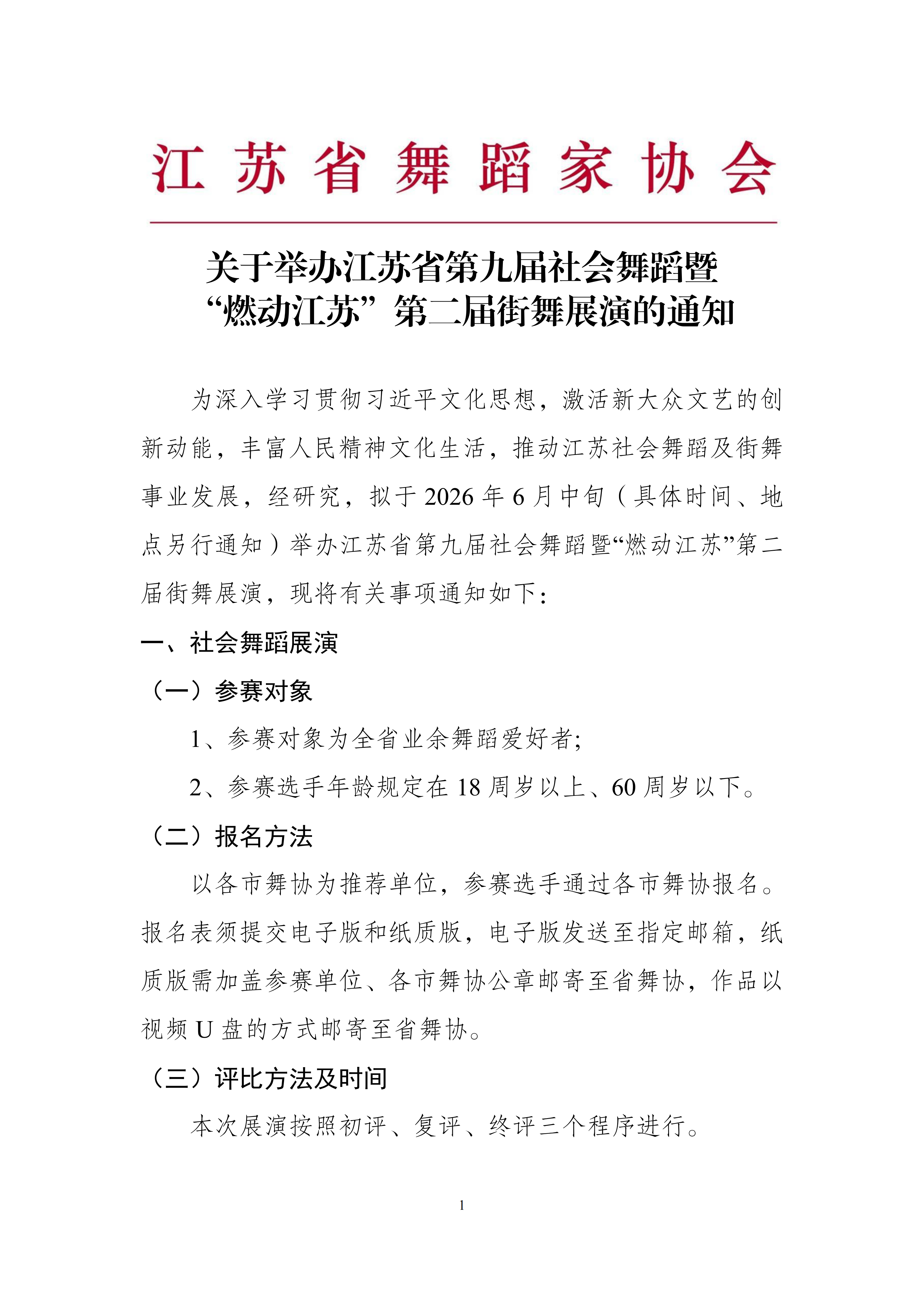 江苏省九届社会舞蹈展演、第二届街舞展演通知