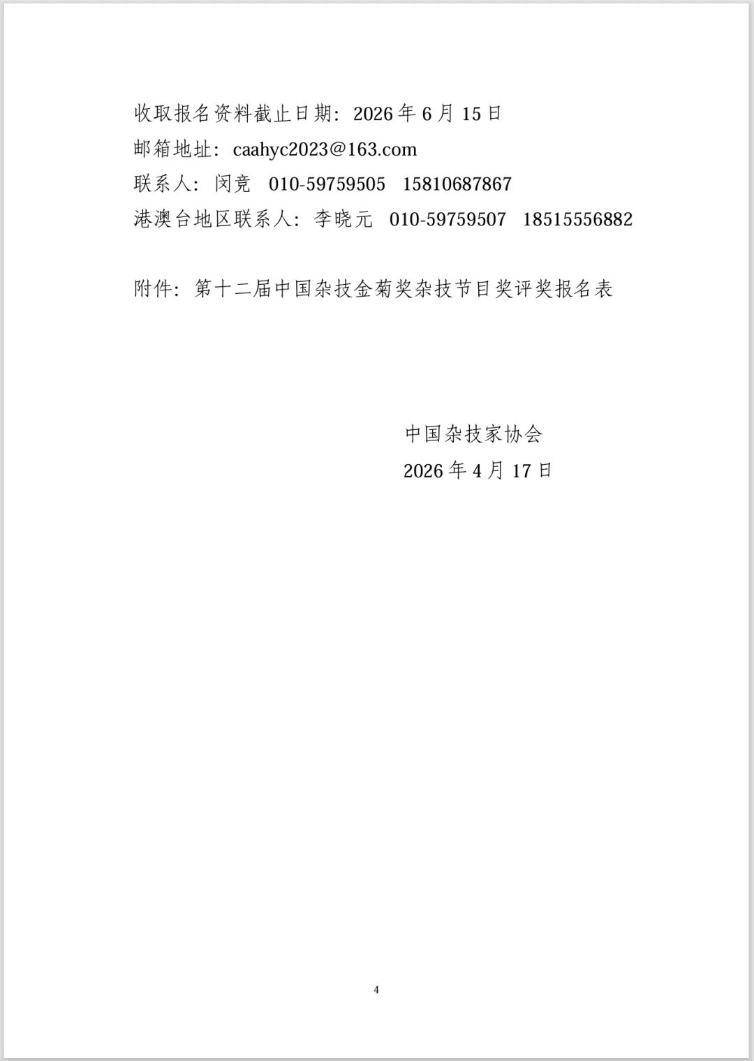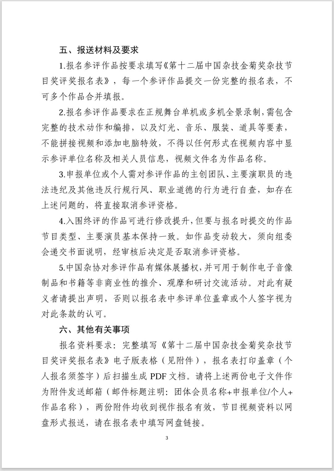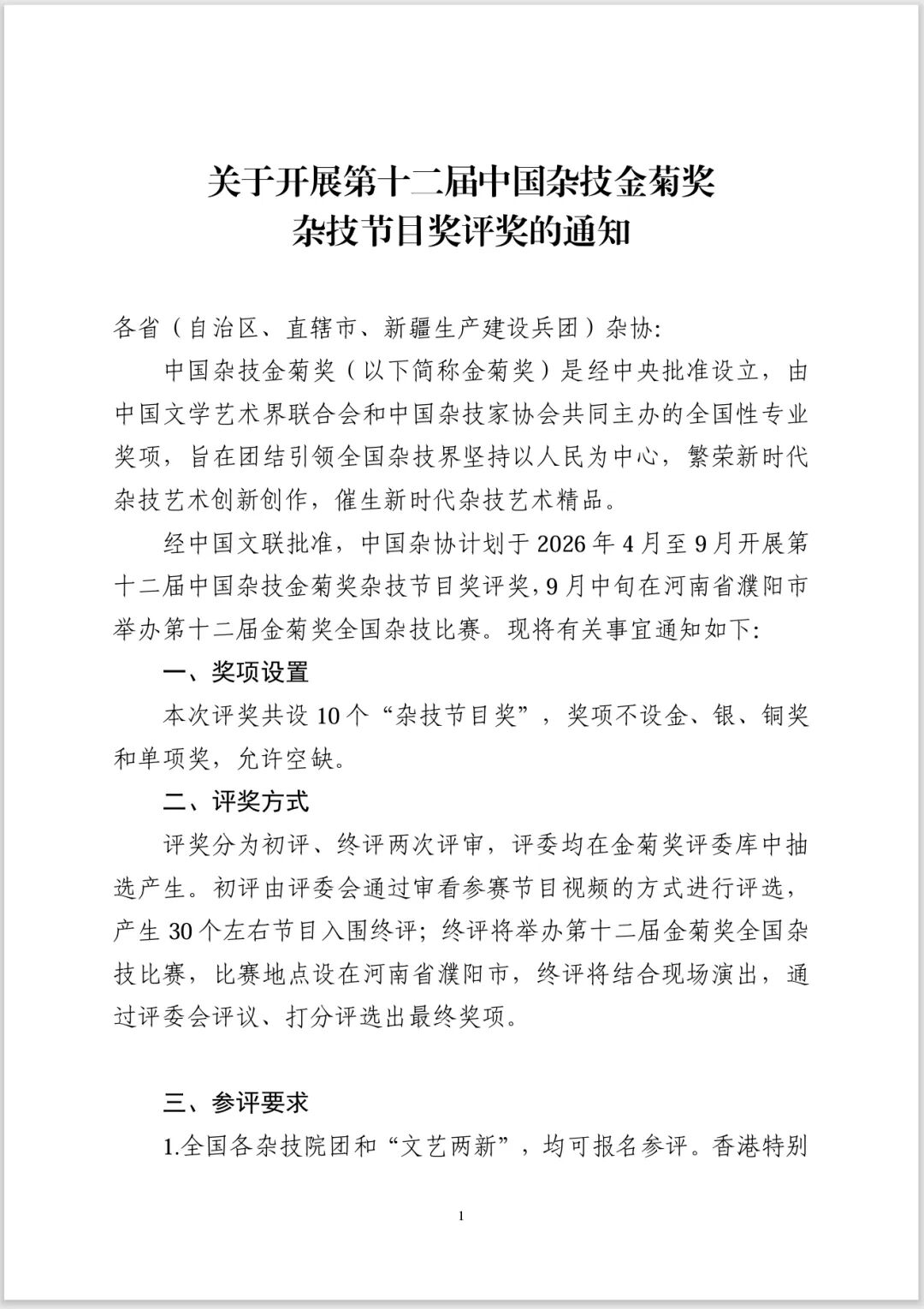 【通知】关于开展第十二届中国杂技金菊奖杂技节目奖评奖的通知